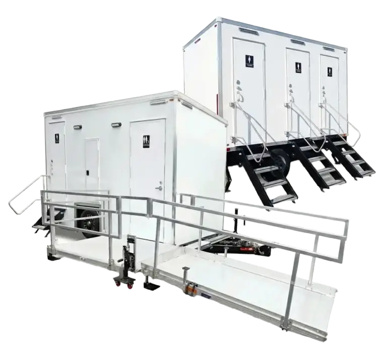 For events, plan one unit per 50-75 guests for a 4-hour event. Add more for longer events, if alcohol is served, or if food is being served. VIP restroom trailers serve 75-150 guests depending on the model. Call us with your guest count and event details — we’ll quote the exact setup.